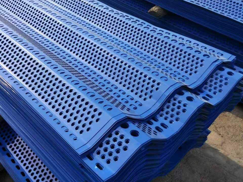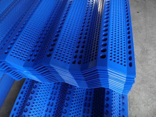 此產品采用金屬原材料經機械組合模具沖孔、壓制、噴塑而成,具有強度高、韌性好、抗彎曲、抗老化、抗阻燃、耐高低溫、耐酸堿、承受彎曲變形能力強等優良性能;經過特殊配方和工藝制作,可根據用戶需要制成各種厚度、顏色,具有使用壽命長、色彩鮮艷不易褪色等特點;綜合抑塵效果良好,優于國內外同類產品。防風抑塵網不僅外形美觀,維護成本低并且具備防火,防盜等優點;完全避免了以往表面覆蓋、噴淋技術、全封閉幾種措施反復投資、耗資巨大、受場地和作業要求限制、抑塵效果不佳的問。此項技術造價低、設置靈活、安裝簡單。一次投資,長期受益。擋風抑塵墻設置后不僅使污染嚴重的地區環境得到有交的改良,而且實施擋風抑塵墻的煤場每年還節省煤數千噸,在取得良好社會效益的同時又獲得了最大的經濟效益,美觀整齊的擋風抑塵墻也成為這些地區一道怡人的風景線!